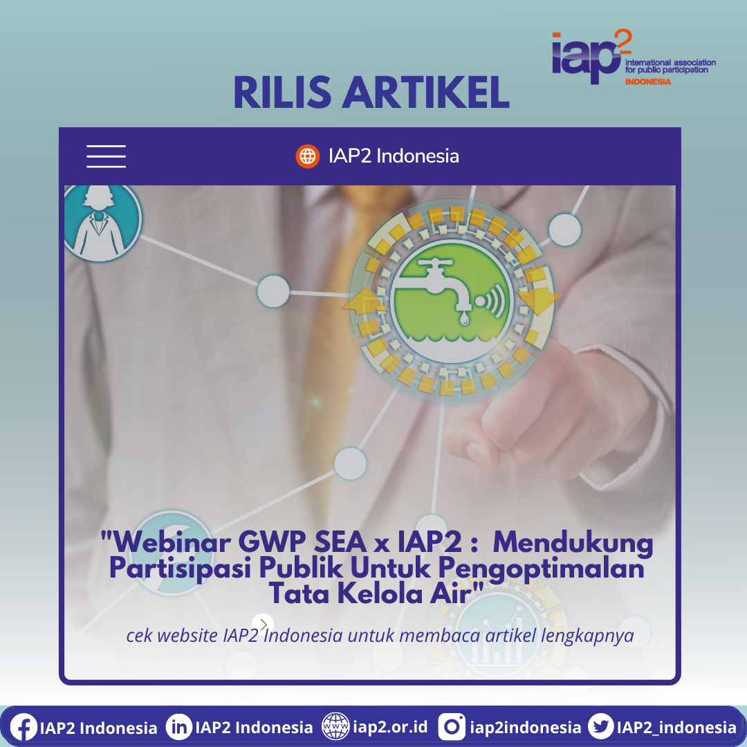 Global Water Partnership Southeast Asia berkolaborasi dengan IAP2 Indonesia dalam mengadakan webinar yang bertajuk “Ensuring Public Participation for Optimal Water Governance in Achieving Water Security” yang diadakan pada tanggal 11 November 2021. Latar belakang webinar